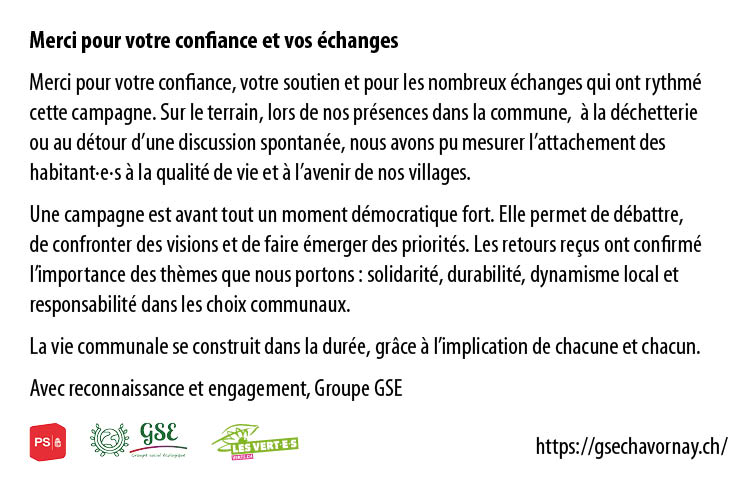 Cette page reflète notre engagement au quotidien et notre volonté de rester connectés avec les habitant·e·s de Chavornay.